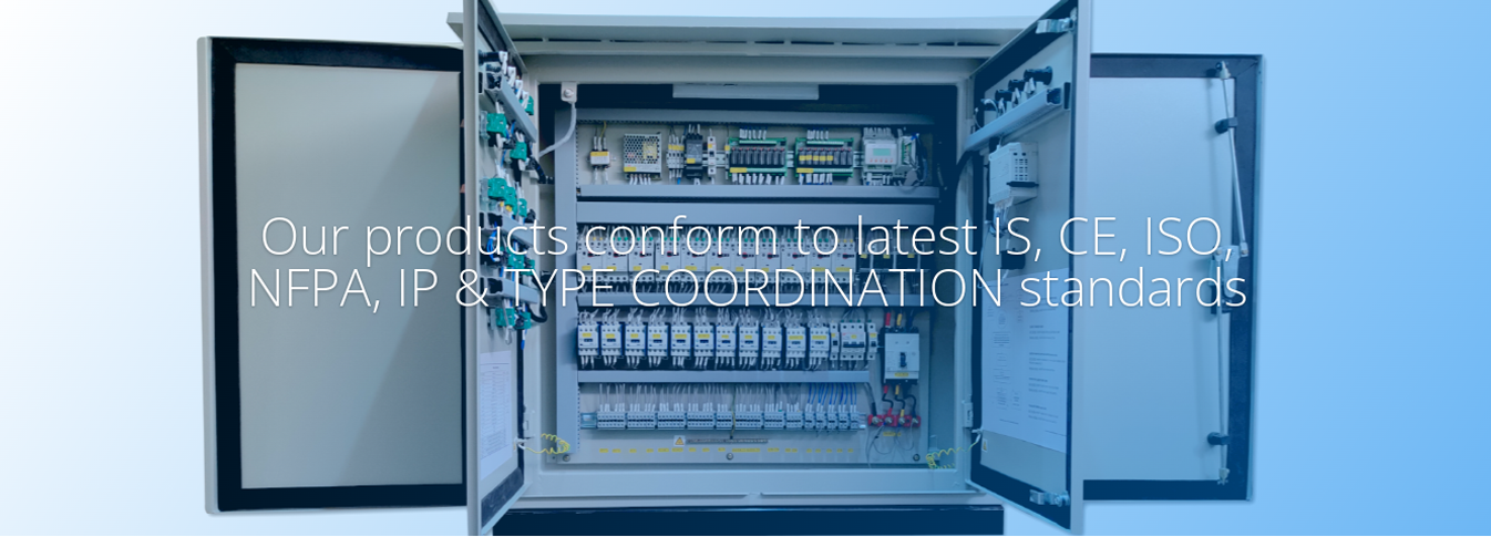 Our Electrical Control Panels comply to Latest IS8623, IS/IEC 61439, IP54, IP55, NFPA79 Electrical Standards